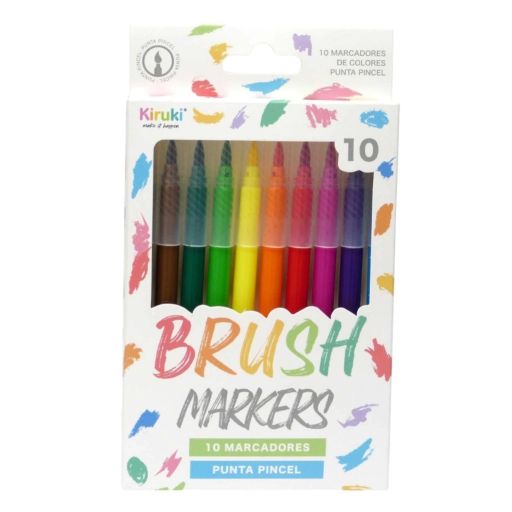 MARCADORES PUNTA PINCEL BRUSH MARKERS X 10 KIRUKI